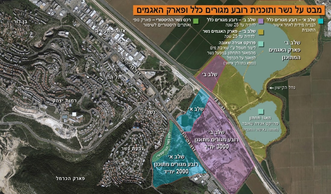 תוכנית חב' כלל ועיריית נשר לרובע המגורים החדש מוצגת כמקשה אחת בשני שלבים: